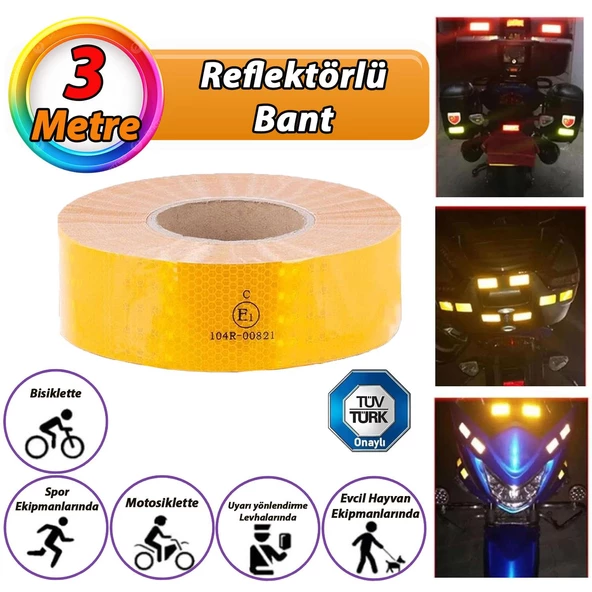 3 MT Reflektörlü Reflektif Fosforlu Araç Oto Kamyon Şerit Bant Tüvtürk Onaylı Düz Sarı İkaz Bandı