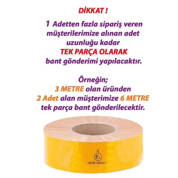 1 MT Reflektörlü Reflektif Fosforlu Araç Oto Kamyon Şerit Bant Tüvtürk Onaylı Düz Sarı İkaz Bandı
