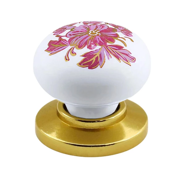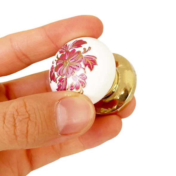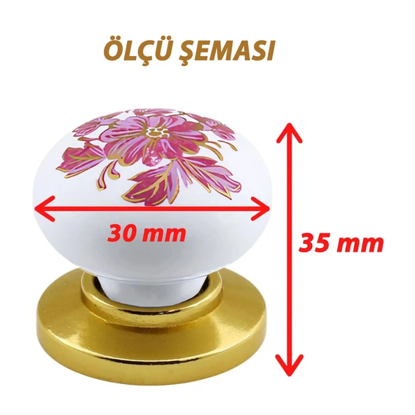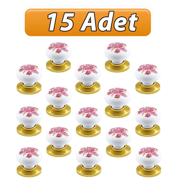 15 Adet Pembe Beyaz Ortanca Çiçek Desenli Altın Tablalı Polimer Düğme Kulp Mobilya Mutfak Dolabı Çekmece Kulbu Kulpları