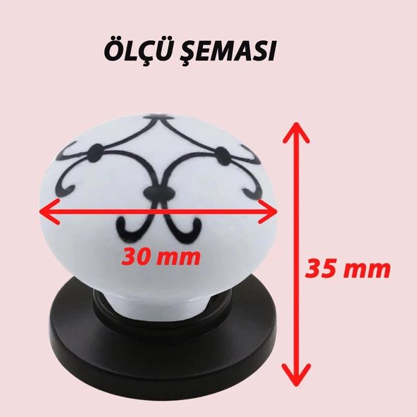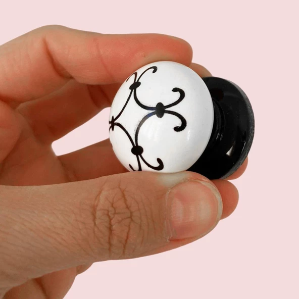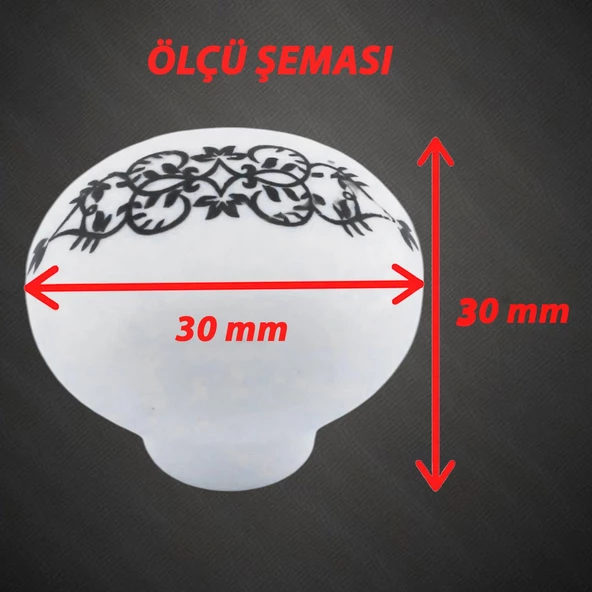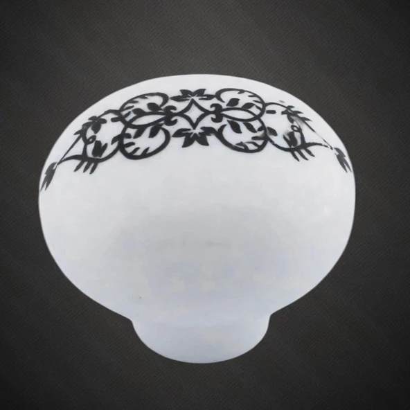 Hanımeli Kulp Beyaz Polimer Düğme Kulp Siyah Tablalı Mobilya Mutfak Dolabı Çekmece Kulbu Kulpları