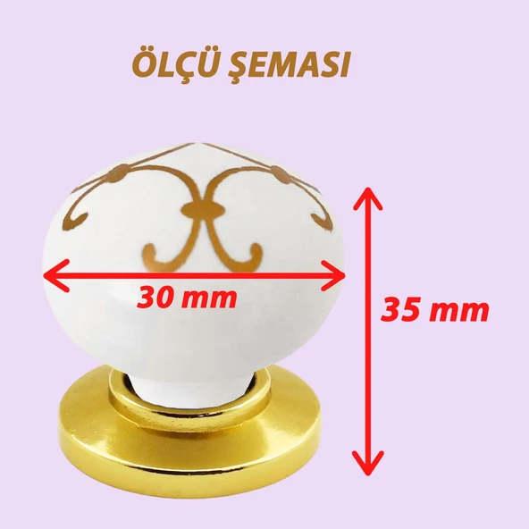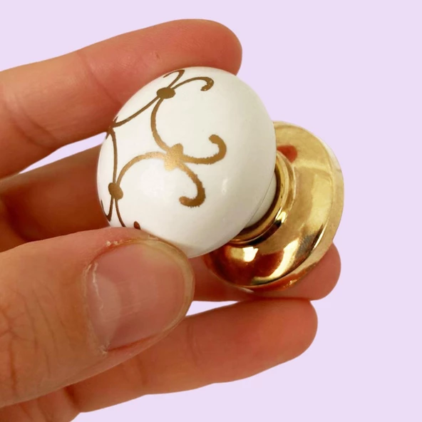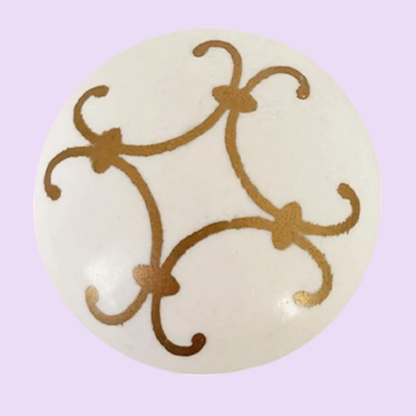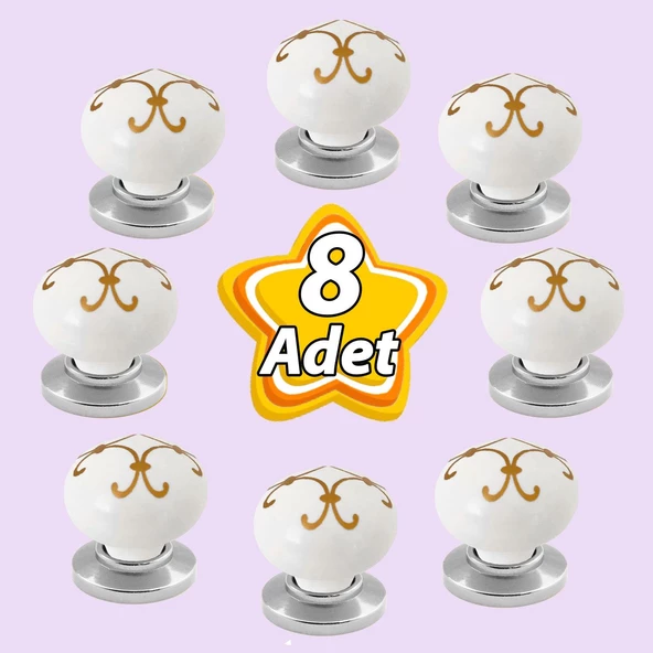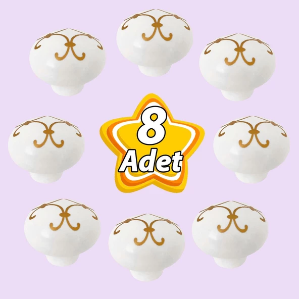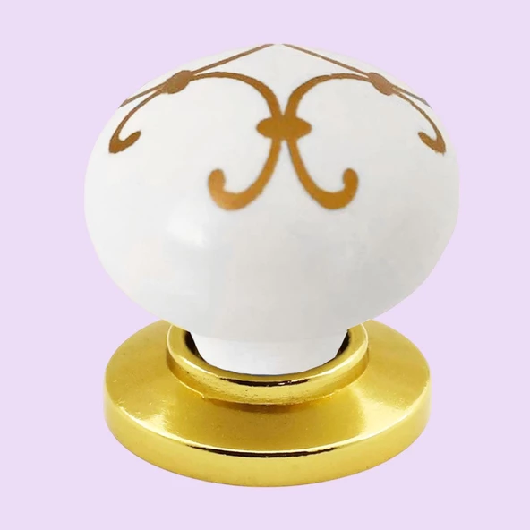 8 Adet Hanımeli Kulp Beyaz Polimer Düğme Kulp Altın Tablalı Mobilya Mutfak Dolabı Çekmece Kulbu Kulpları