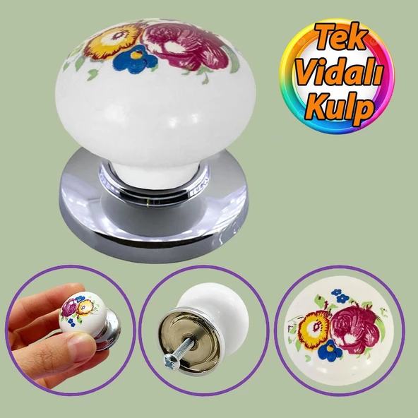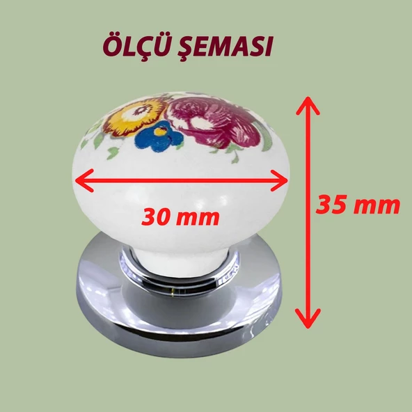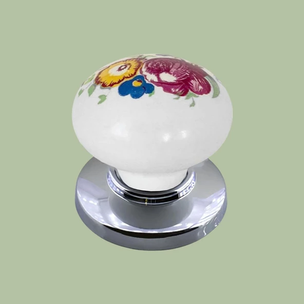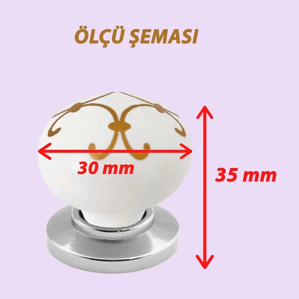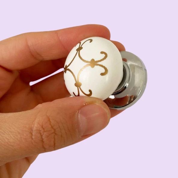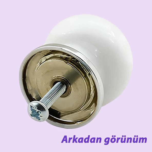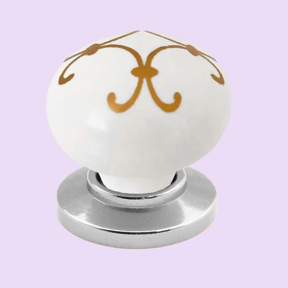 Menekşe Kulp Beyaz Polimer Düğme Kulp Krom Tablalı Mobilya Mutfak Dolabı Çekmece Kulbu Kulpları