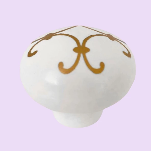 8 Adet Defne Altın Çizgili Beyaz Polimer Düğme Kulp Mantar Mobilya Mutfak Dolabı Çekmece Kulbu Kulpları