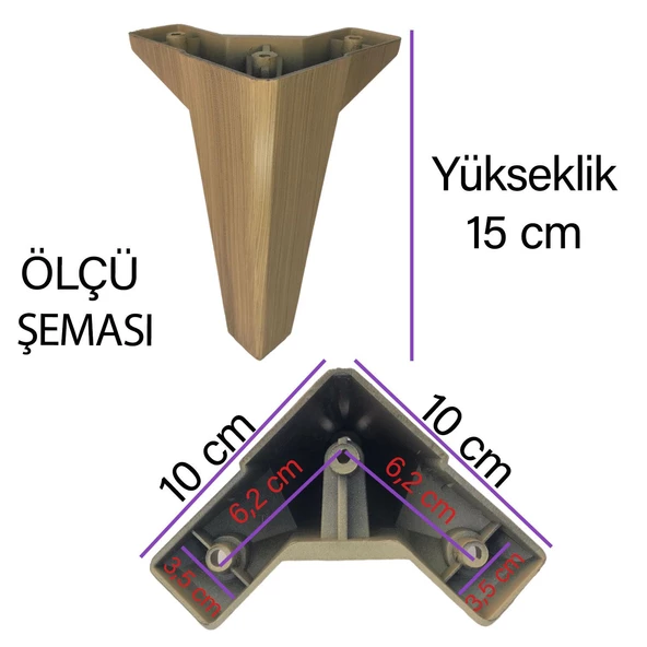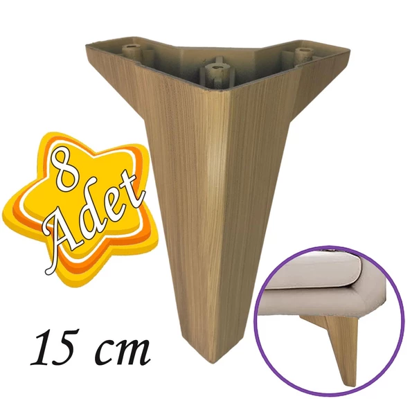 8 Adet Serdivan 15 cm Açık Ceviz Lüx Mobilya Kanepe Sehpa Ünite Koltuk Ayağı Baza Ayak