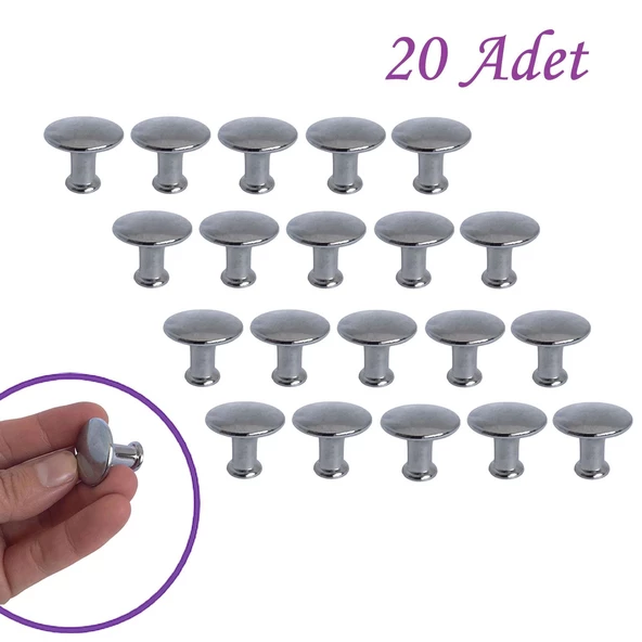 Düz Düğme Krom Kulp Mobilya Çekmece Dolap Kapak Kulbu Metal Kulp Aksesuarları Vidalı (20 Adet)