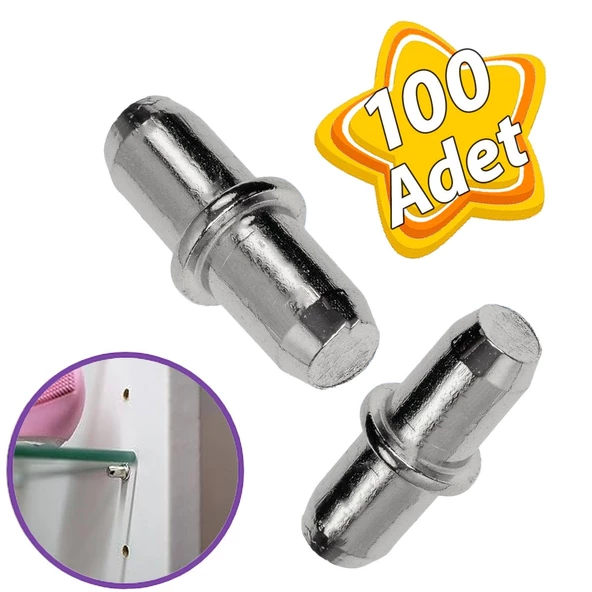Metal Halkalı Raf Pimi Cam Ahşap Metal Raf Tutucu Çivisi Mobilya Dolap Pimi (100 Adet)
