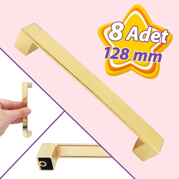 8 Adet Bihter Düz Kulp 128 mm Altın Mutfak Kulpu Çekmece Dolap Kapak Kulbu Metal Mobilya Dolabı Kulpları