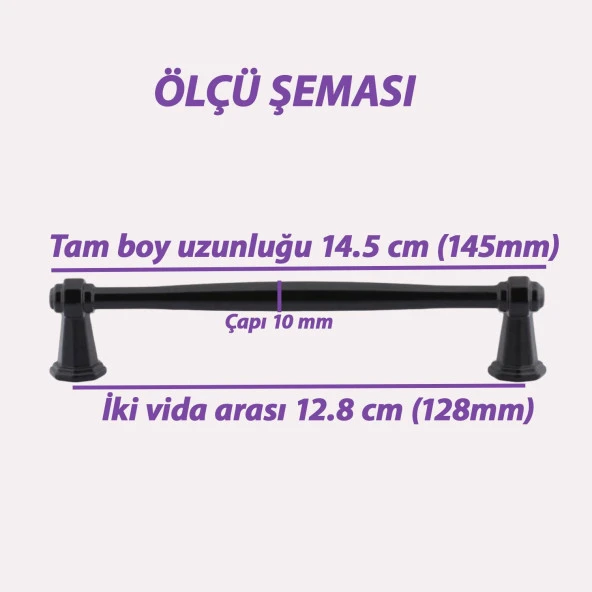 8 Adet Peri Kulp 128 mm Siyah Mutfak Kulpu Çekmece Dolap Kapak Kulbu Metal Mobilya Dolabı Kulpları