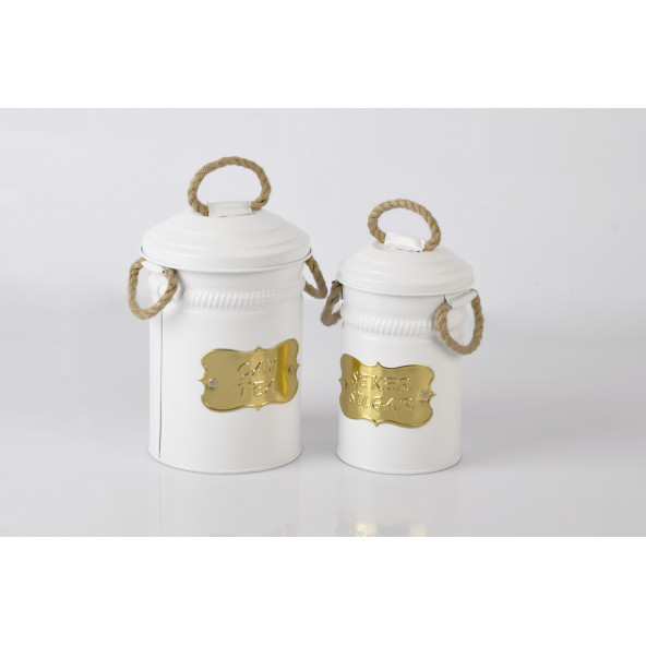 2li Galvaniz Hasır Kulplu Hasır İpli Beyaz Çay Şeker Saklama Kabı Kutusu