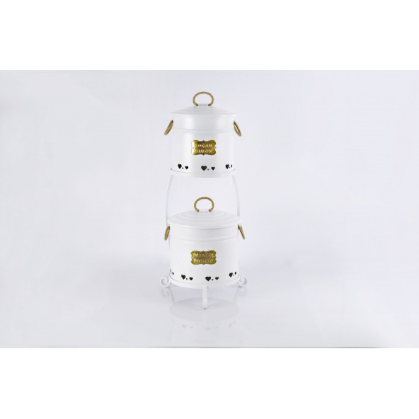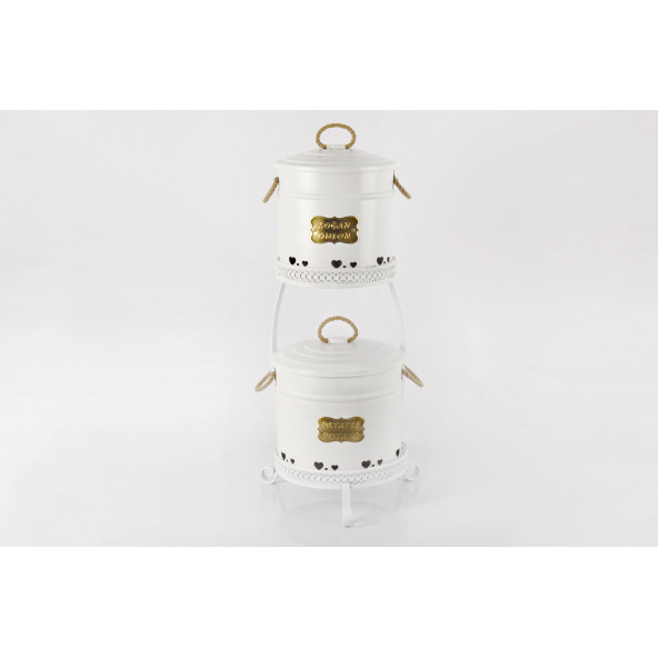 Galvaniz Dantel Desen Metal Standlı 2 Katlı Patates Soğan Kovası Beyaz 1051
