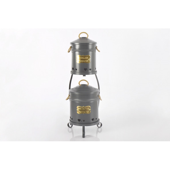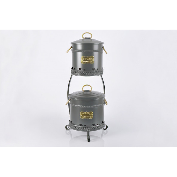 Galvaniz Dantel Desen Metal Standlı 2 Katlı Patates Soğan Kovası Antrasit 1051