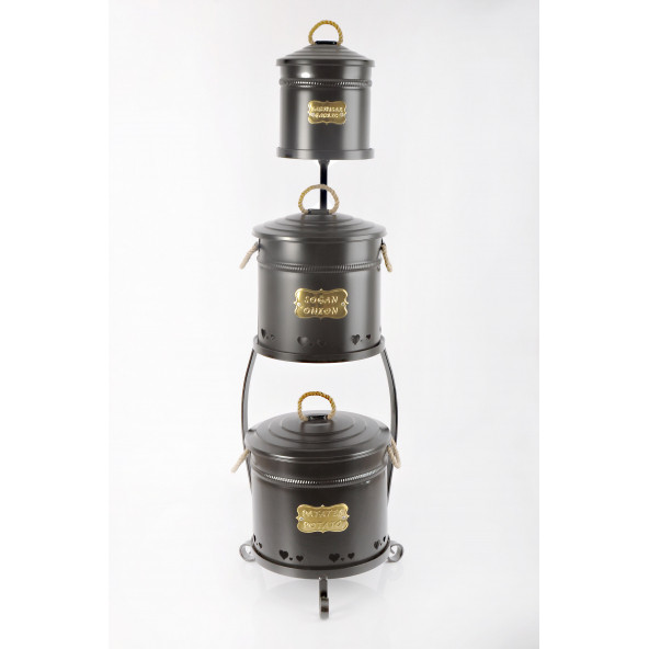 Galvaniz Metal Standlı Antrasit 3 Katlı Patates Soğan Sarımsak Kovası 1040