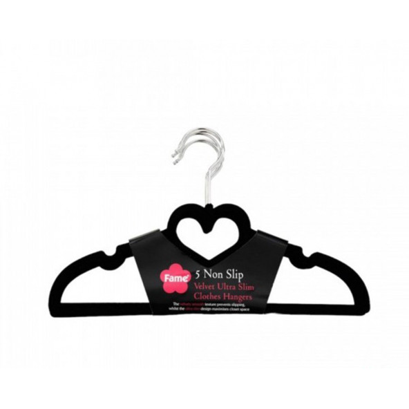5 Adet Kadife Kaydırmaz Elbise Askısı Kalp Model Siyah