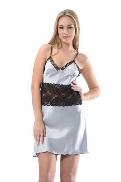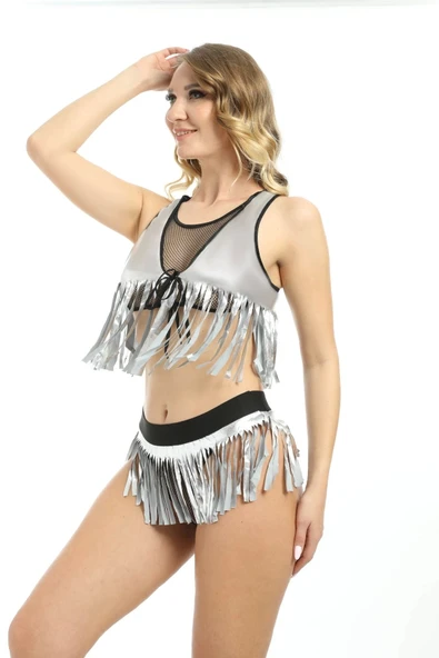 Gri Deri ( Lame ) Püsküllü Gecelik - 428