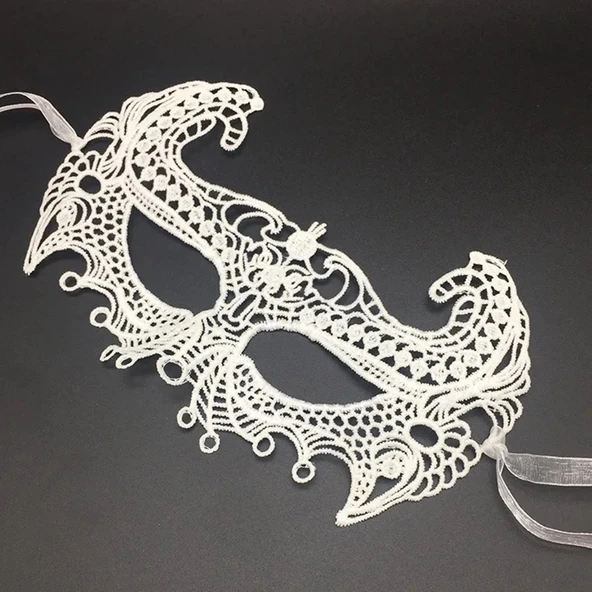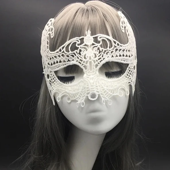 Beyaz Renk Dantel Kesim Balo Maskesi