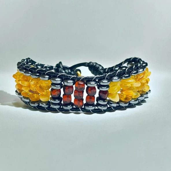 Makrome damla kehribar bileklik Hcz-Model GHT