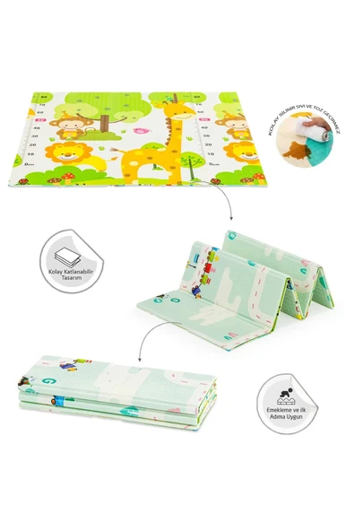 Cute My Friends Katlanabilir Çift Taraflı Oyun Halısı Matı Yeni Ölçü 120x120x1 Cm (TAŞIMA ÇANTALI)