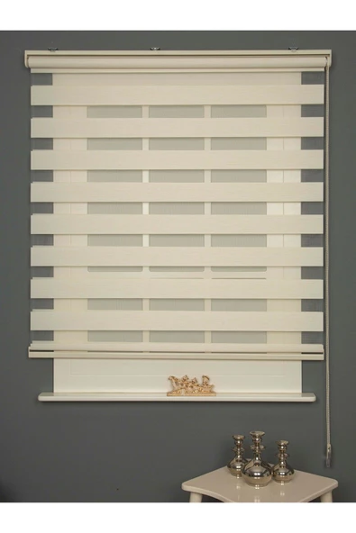 Blind-X Krem Çift Mekanizmalı Kadife Demet Nakışlı Tül Stor Perde (Dayanıklı Alüminyum Kasa)
