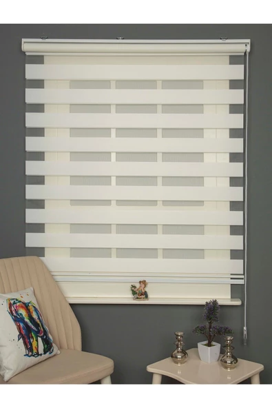 Blind-X Beyaz Geniş Plise Stor Zebra Perde Balkon Perdesi, Oturma Odası Perdesi Alüminyum Dayanıklı Kasa