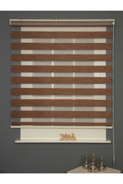 Blind-X Kahverengi Bambu Stor Zebra Perde Balkon Perdesi, Oturma Odası Perdesi (Dayanıklı Alüminyum Kasa)