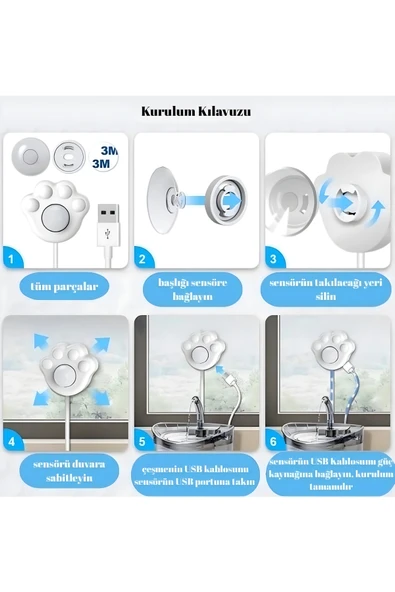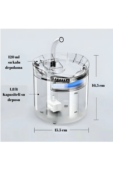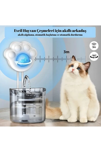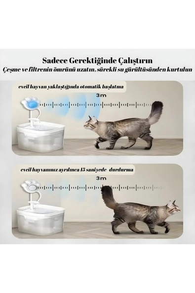 Kedi Su Sebili Hareket Sensörü 3 Metreye Kadar Otomatik Algılama USB Girişli