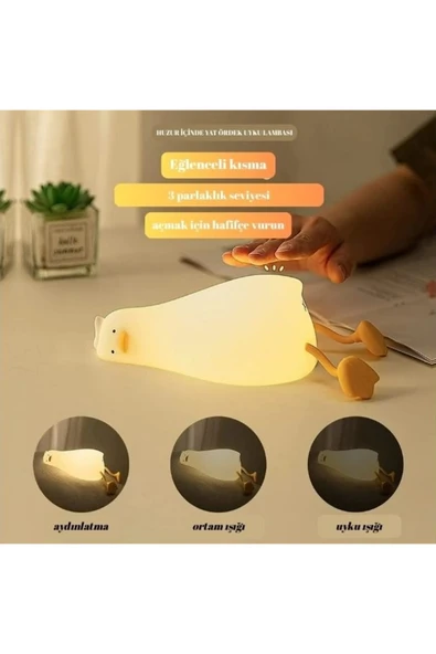 Ördek Tasarımlı Dokunmatik LED Gece Lambası – Şarjlı ve Yumuşak Işıklı