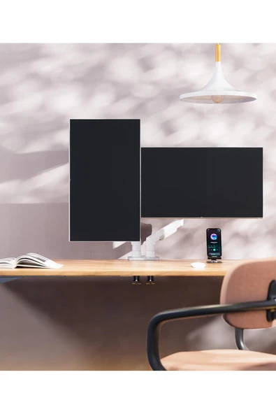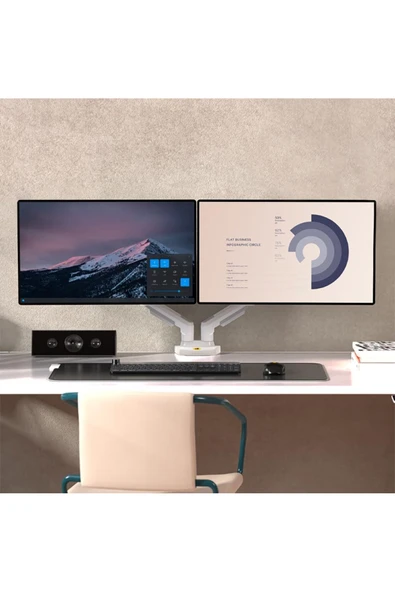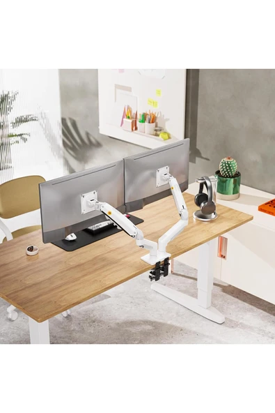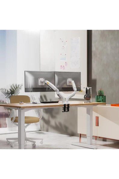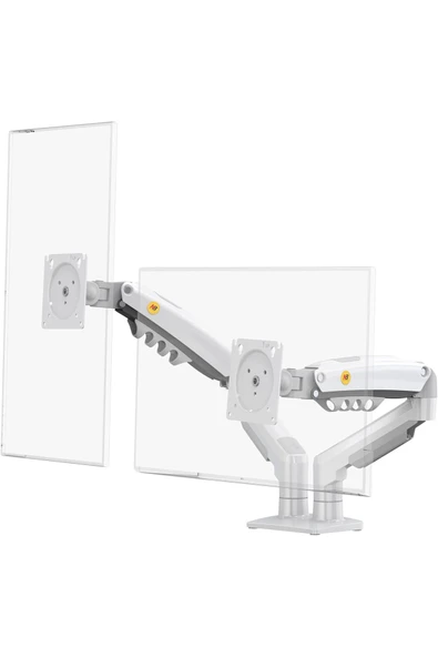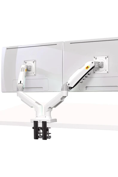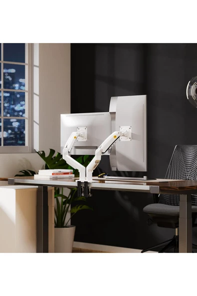 NB F160 North Bayou Beyaz Gazlı Yaylı Çift Monitör Kol Standı,17”-27” Ekran Uyumlu