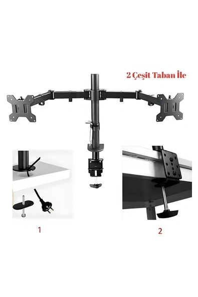 Çift Kol Ayarlanabilir Monitör Tutucu Stand 14''-32'' LCD/LED VESA Uyumlu Monitör Ayağı