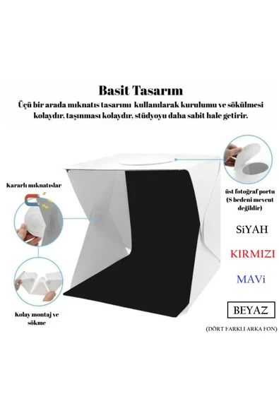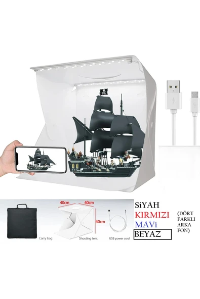Katlanabilir Mini Fotoğraf Kutusu– Işıklı Ürün Çekim Çadırı 40x40x40
