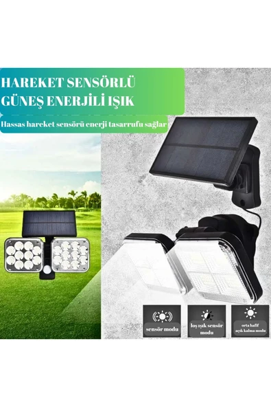 120 LED Solar Lamba 20W Güneş Enerjili Su Geçirmez Şarjlı Hareket Sensörlü Dış Mekan Aydınlatma