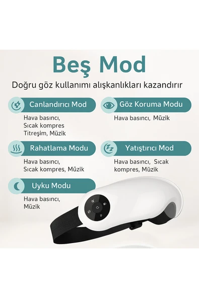Akıllı Göz Masaj Aleti – Hava Basınçlı, Isıtmalı, Titreşimli ve Müzikli 5 Farklı Masaj Modu