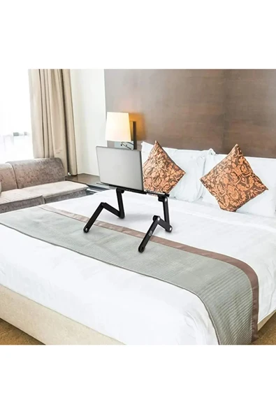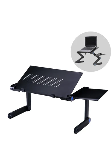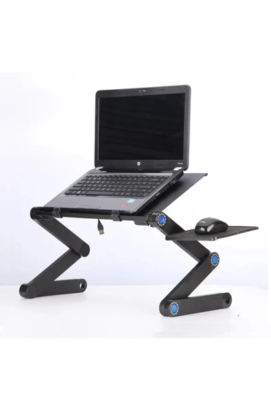 Laptop Masası Katlanabilir Çift Fanlı, Soğutucu Sistemli, Mouse Alanlı Taşınabilir Sehpa