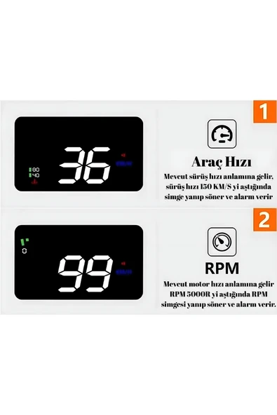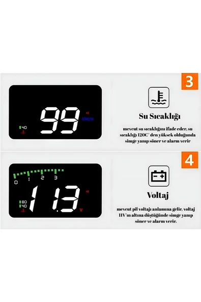 Araç Hız Göstergesi Dijital Ekran ,Voltaj Su Sıcaklığı ,Yansımalı Göstergeli , OBD2 HUD