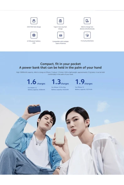 Powerbank 33W 10000mAh Pocket Edition Pro İki Yönlü Hızlı Şarj iphone uyumlu 2023 Versiyon