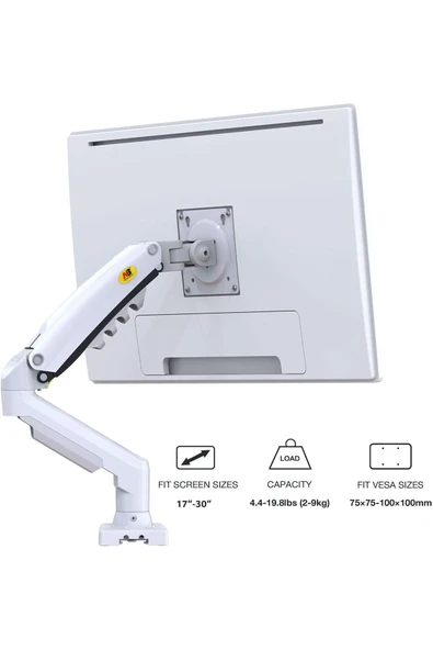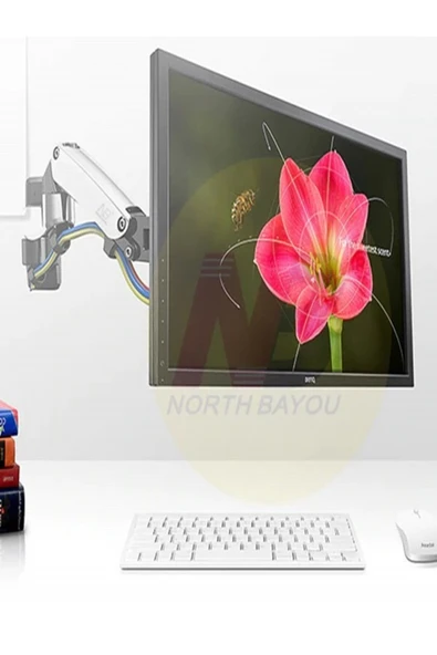 North Bayou NB F80-XE Beyaz Tek Kol Amortisörlü Monitör Tutucu – 17"-30" Ekran