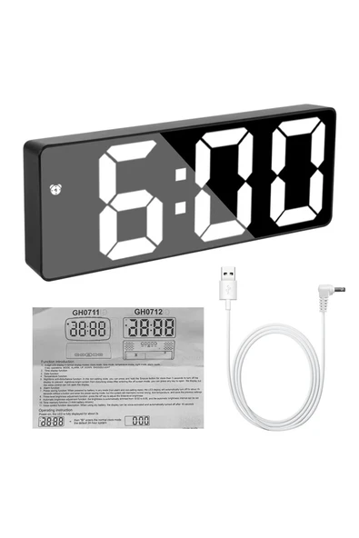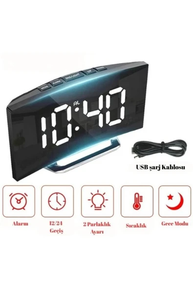 Aynalı Alarmli Dijital Saat 7 inç Kavisli Ekran Parlaklık Ayarlı