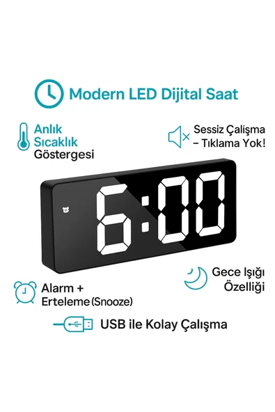 LED Dijital Masa Saati Isı Göstergeli , Alarmlı , Büyük Ekran , Sessiz