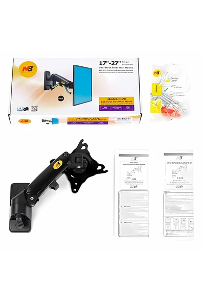 North Bayou F120 Gazlı Yaylı Duvar Tipi Monitör Askı Aparatı, 17”-27” Uyumlu