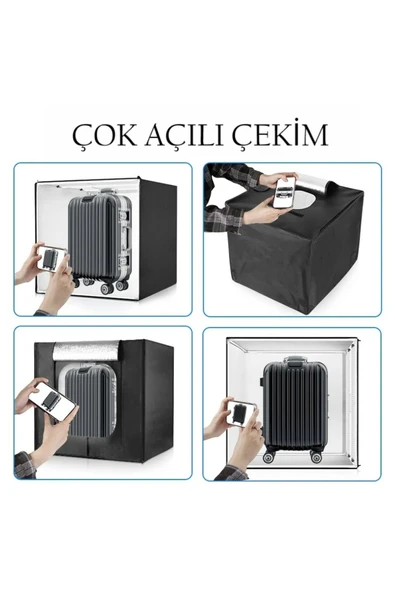 80x80x80 LED Işıklı Ürün Fotoğraf Çekim Kabini - Büyük Boy Stüdyo Çadırı
