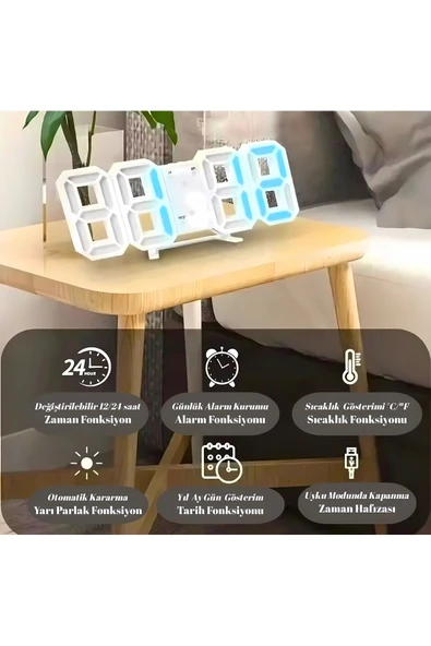 LED Dijital Saat Alarm Sıcaklık Ve Tarih Göstergeli Uzay Saati, Otomatik Işıklı