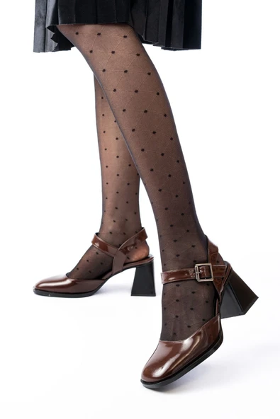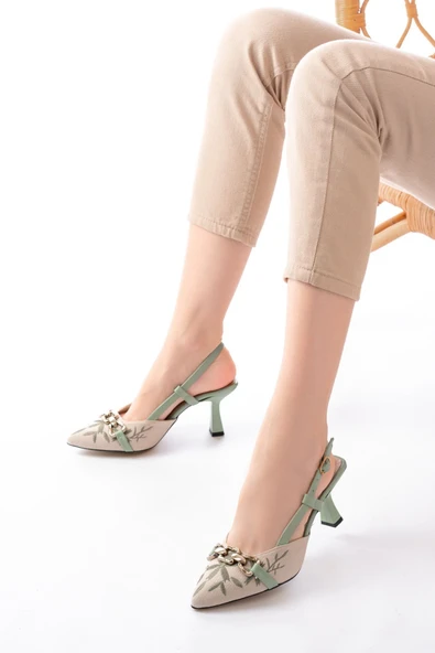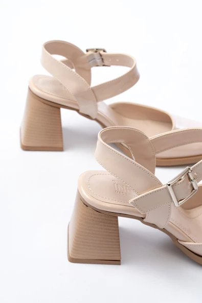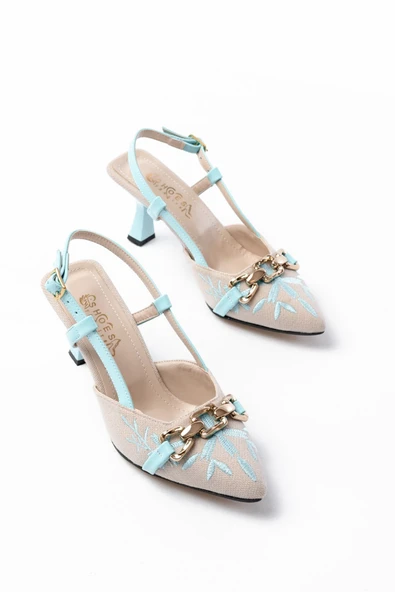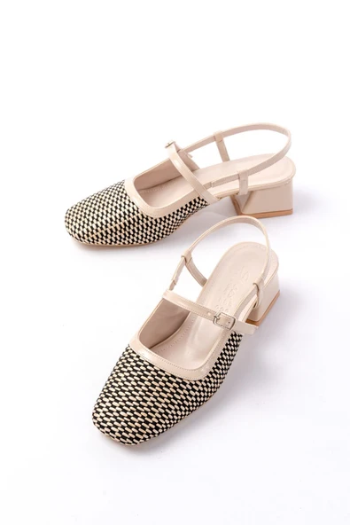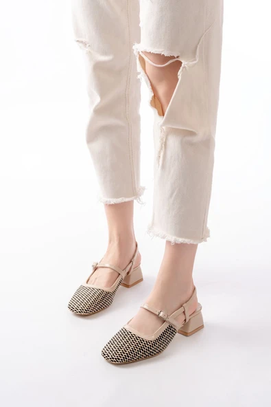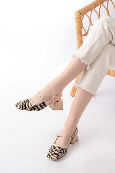K-250 Taba Keten Günlük Arkası Açık Tokalı Topuklu Kadın Ayakkabı