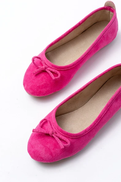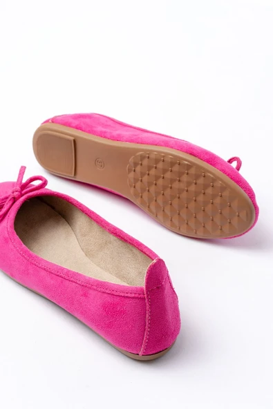 6101 Fuşya Süet Fiyonklu Günlük Kadın Babet