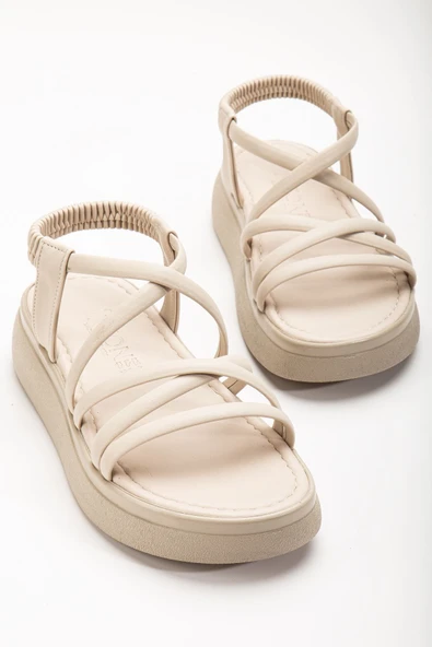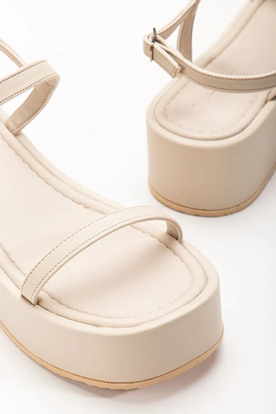 861-1027 Bej Dolgu Topuk Kadın Sandalet