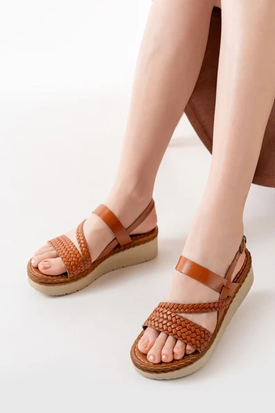 730-153 Taba Ortopedik Hakiki Deri Dolgu Kadın Sandalet