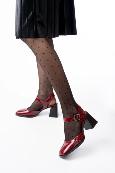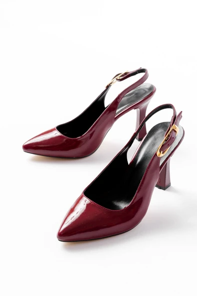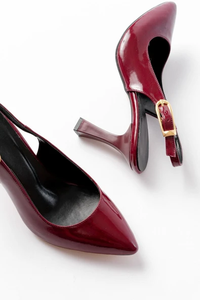 719 Bordo Rugan Sivri Burunlu Toka Detaylı Topuklu Kadın Ayakkabı