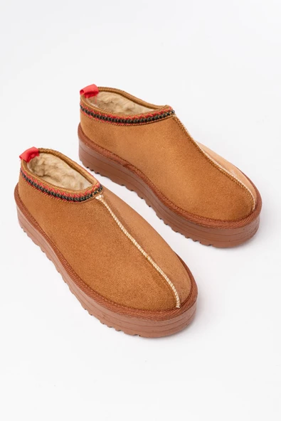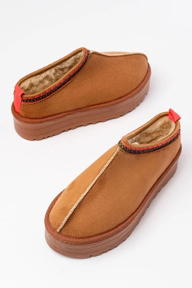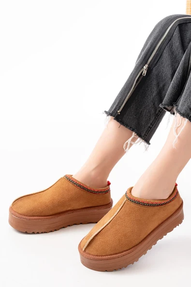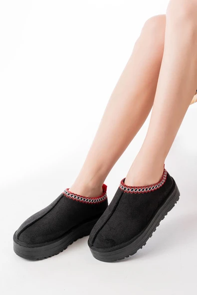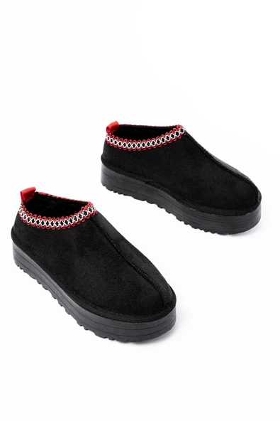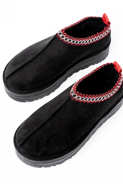 NDR-2888 Siyah Süet İçi Kürklü Kışlık Kapalı Burun Kadın Günlük Terlik