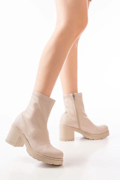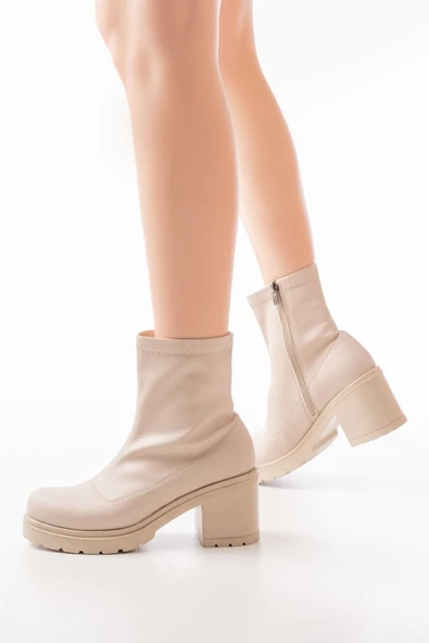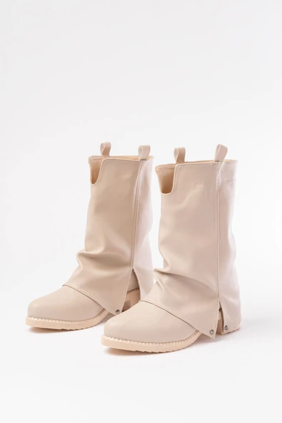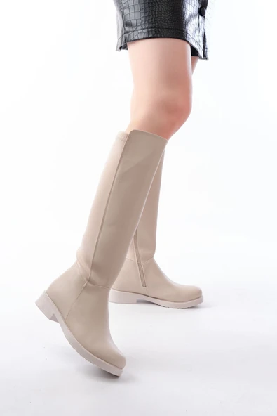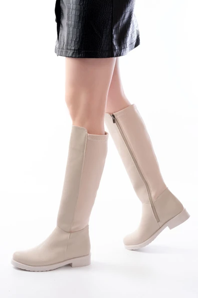 165-305 Bej Arka Streç Fermuarlı Günlük Kadın Çizme