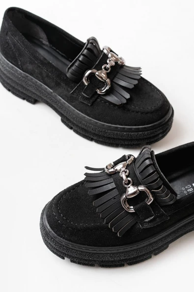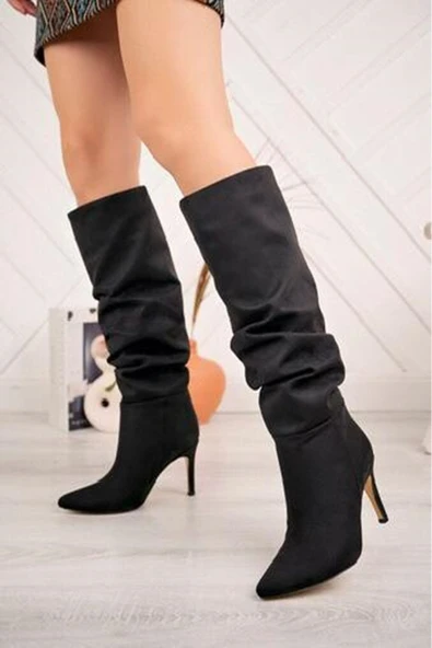 767-3040 Siyah Süet Günlük Kalın Topuklu Kadın Bot