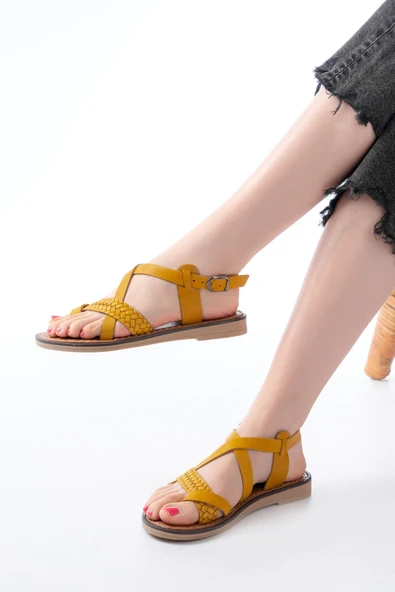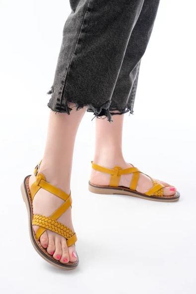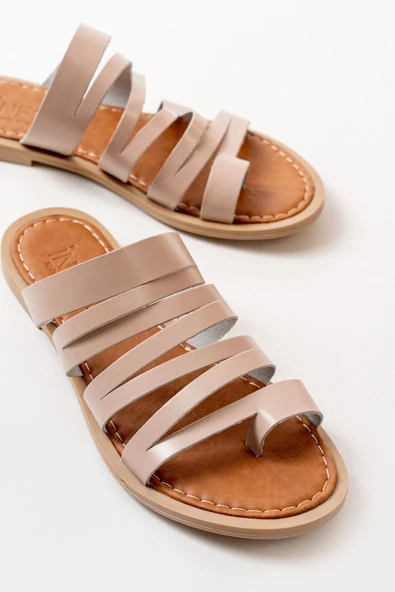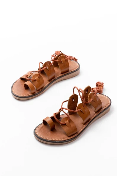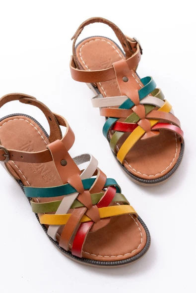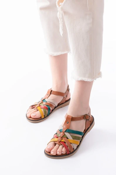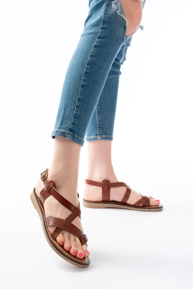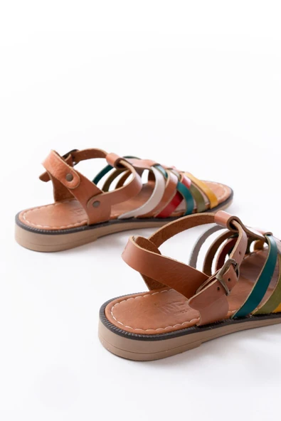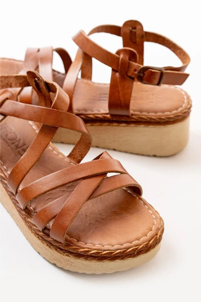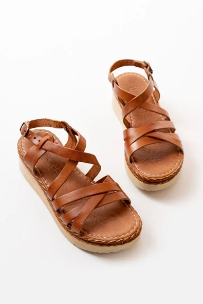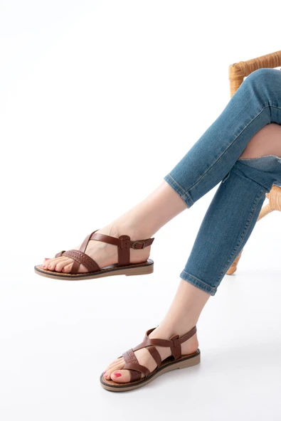 205-012 Taba Ortopedik Hakiki Deri Kadın Sandalet