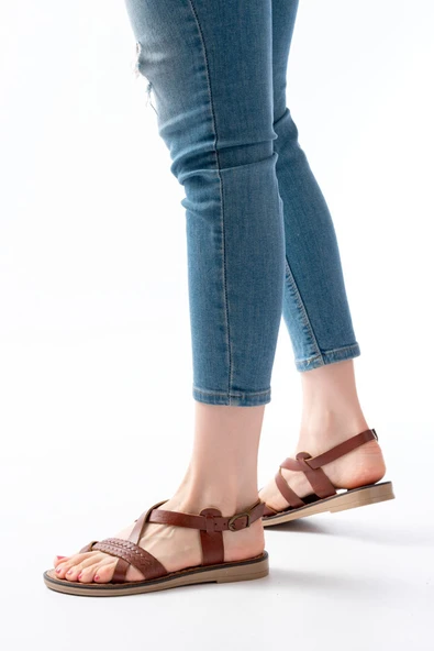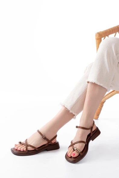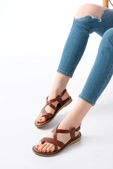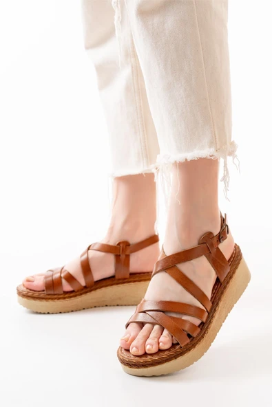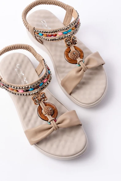 DM-608 Taba Taşlı Arka Lastikli Günlük Kadın Sandalet